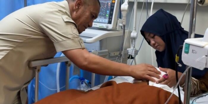 Luwu Timur, – Bupati Luwu Timur, Irwan Bachri Syam, menjenguk Ashraf (6), korban tenggelam Danau Matano yang tengah menjalani perawatan intensif di