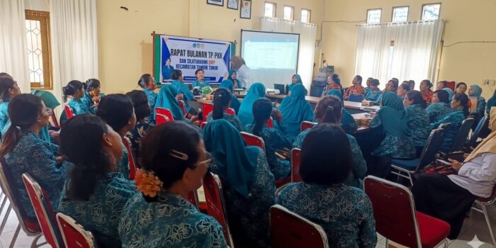TOMONI TIMUR — Tim Penggerak Pemberdayaan Kesejahteraan Keluarga (TP PKK) Kecamatan Tomoni Timur menggelar rapat koordinasi bulanan sekaligus silaturahmi bersama Dharma Wanita