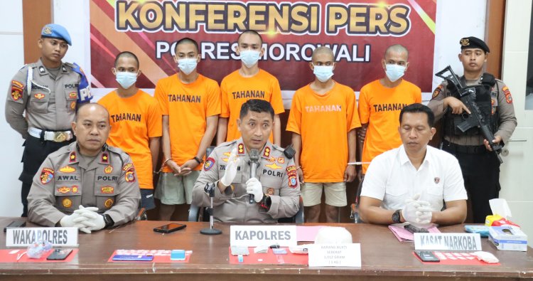 Telusur-news.com, Morowali – Kapolres Morowali, AKBP Zulkarnain menunjukkan langkah tegas memerangi penyalahgunaan narkotika hanya 10 hari setelah menjabat, Lima pelaku penyalahgunaan narkoba jenis sabu dengan barang bukti mencapai 1,034 kg berhasil diamankan.