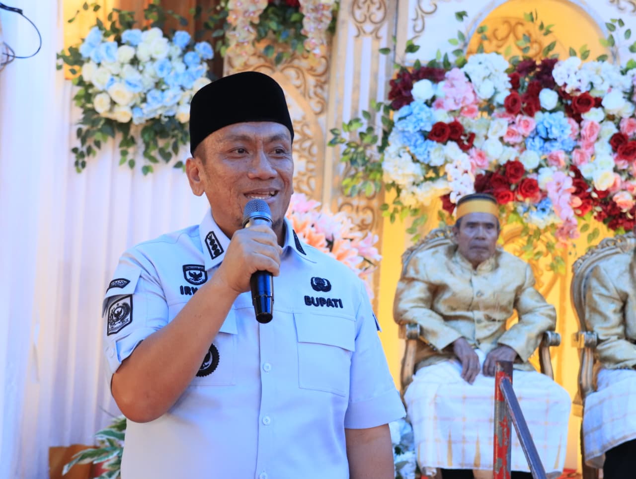 Selain melakukan kunjungan kerja Bupati Irwan juga menghadiri undangan hajatan warga yang ada di Dusun T. Mincarae, Desa Loeha, sebagai bentuk silahturahmi dengan masyarakat.