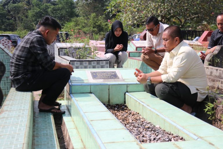Momen tersebut berlangsung khidmat. Dengan langkah perlahan, Bupati Irwan tampak membersihkan makam, merapikan rumput, lalu menundukkan kepala dalam doa. Suasana hening menyelimuti area pemakaman, seakan rombongan yang mendampingi ikut larut dalam keharuan.