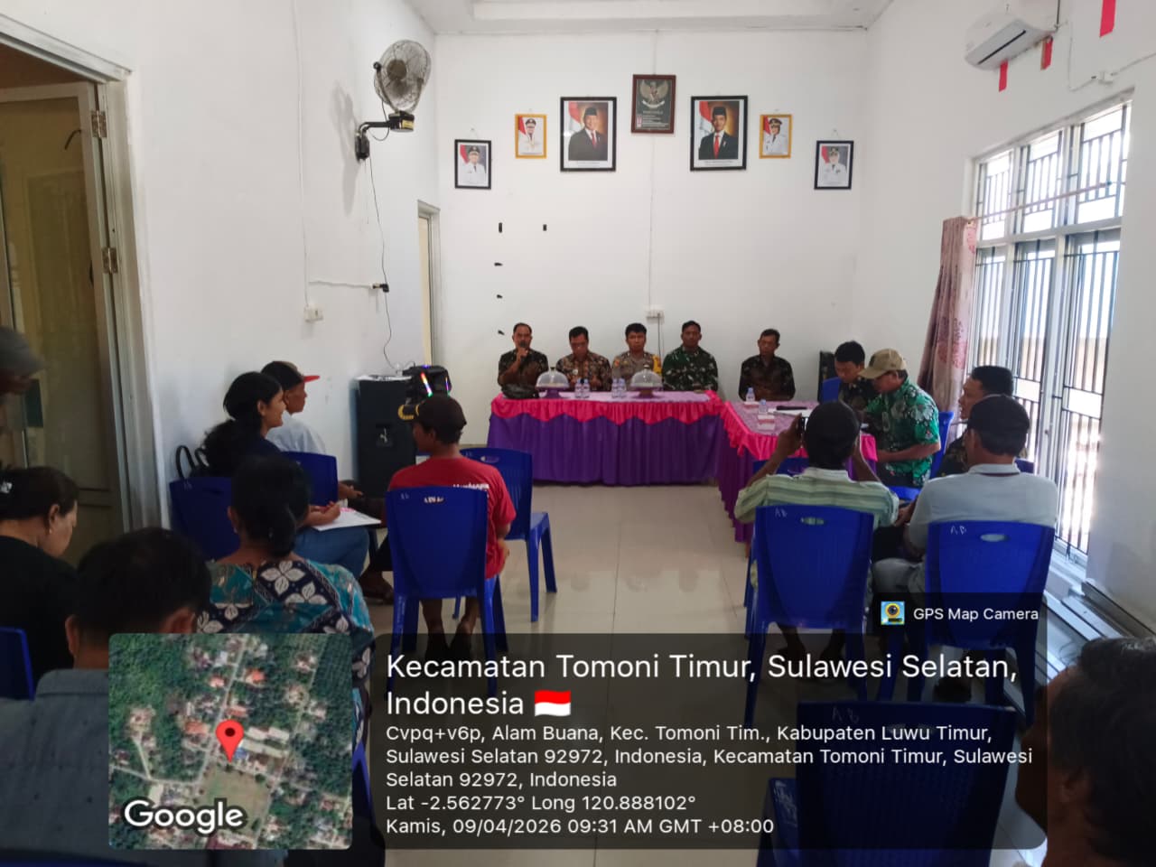 LUWU TIMUR — Camat Tomoni Timur, Yulius, menghadiri rapat pembentukan Tim Seleksi penjaringan perangkat Desa Alam Buana, Kamis (9/4/2026). Rapat tersebut menjadi langkah awal dalam mengisi kekosongan jabatan Kepala Urusan (Kaur) Perencanaan di desa tersebut.