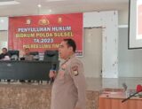 telusur-news.com, Luwu Timur – Penyuluhan Hukum oleh bidang hukum Polda Sulsel diikuti sejumlah personil polres Luwu Timur di Aula Simpurusiang, Desa Puncak