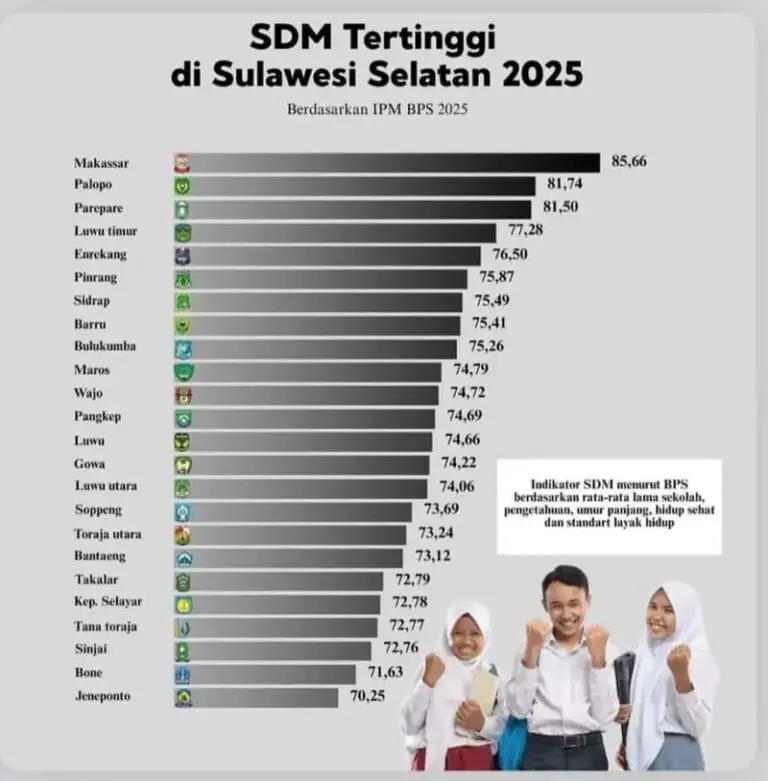 Luwu Timur, — Kabupaten Luwu Timur menorehkan prestasi membanggakan di bidang pembangunan sumber daya manusia (SDM) dengan mencatatkan Indeks Pembangunan Manusia (IPM) tertinggi di tingkat kabupaten se-Sulawesi Selatan.