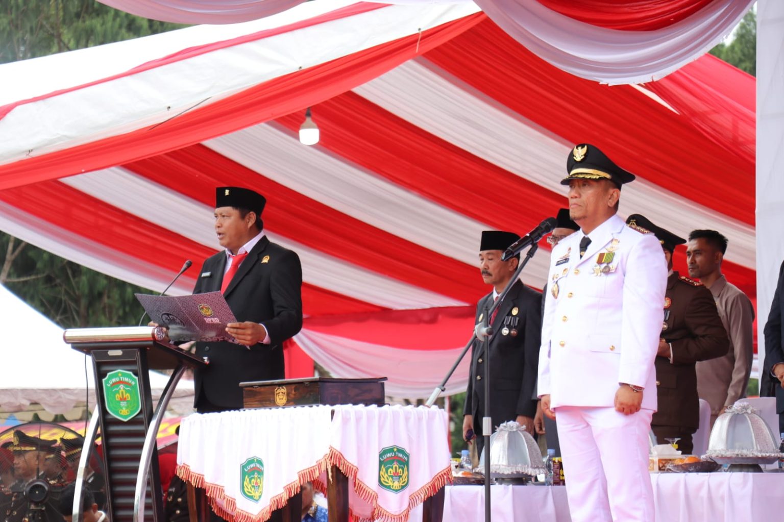 Dalam rangkaian upacara, Ketua DPRD Ober Datte membacakan teks Proklamasi, sementara Wakil Ketua II DPRD, Harisah Suharjo, membacakan naskah Undang-Undang Dasar 1945. Ober Datte menegaskan, kemerdekaan yang dirasakan saat ini adalah buah perjuangan para pahlawan, dan tugas generasi sekarang adalah melanjutkan perjuangan tersebut.