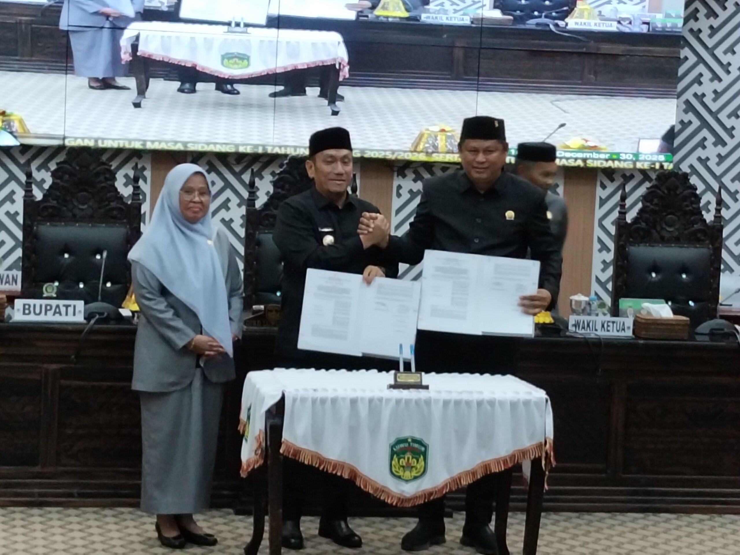Luwu Timur – Pemerintah Kabupaten Luwu Timur bersama Dewan Perwakilan Rakyat Daerah (DPRD) secara resmi menyepakati tiga Rancangan Peraturan Daerah (Ranperda) strategis dalam Rapat Paripurna DPRD yang digelar di Ruang Sidang DPRD Luwu Timur, Selasa (30/12/2025).