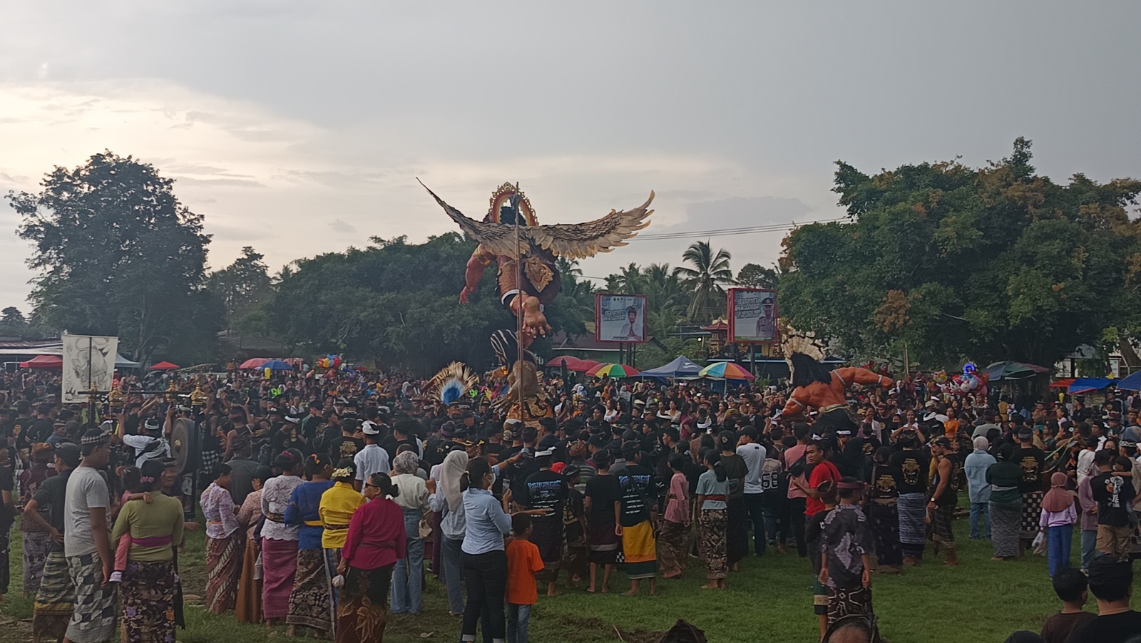 Sebanyak enam ogoh-ogoh berukuran besar diarak oleh para pemuda dari masing-masing adat. Iringan tabuhan balaganjur dan tarian tradisional menghadirkan suasana semarak sekaligus magis. Tradisi ini tidak sekadar menjadi tontonan, tetapi juga sarat makna sebagai simbol pembersihan diri dari energi negatif.