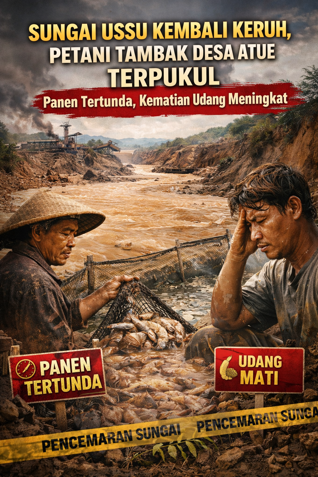 Malili, Luwu Timur – Kondisi Sungai Ussu yang kembali keruh dan berubah warna menjadi kecokelatan berdampak langsung pada kehidupan masyarakat, khususnya petani tambak di Desa Atue, Kecamatan Malili. Perubahan kualitas air ini dilaporkan memengaruhi produktivitas tambak serta memicu kerugian ekonomi bagi warga.