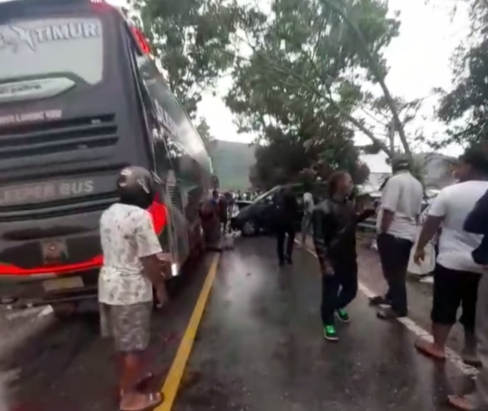 telusur-news.com, Luwu Timur – Laka lantas antara Bus Bintang Timur dengan mobil innova terjadi di Jalan poros Trans Sulawesi Selatan, tepatnya di Desa Manurung, kecamatan Malili, Luwu Timur, Selasa (31/01/23) sekira pukul. 06.30 WITA.