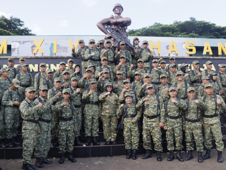 GOWA — Wakil Bupati Luwu Timur, Hj. Puspawati Husler, tampil penuh kharisma mengenakan pakaian Komponen Cadangan (Komcad) saat menghadiri Upacara Pembukaan Jambore Kepala Desa se-Sulawesi Selatan di Rindam XIV Hasanuddin, Pakatto, Gowa, Jumat pagi (12/12/2025).