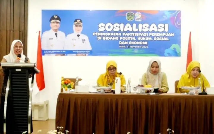 Luwu Timur — Wakil Ketua II DPRD Kabupaten Luwu Timur, Hj. Harisah Suharjo, menjadi narasumber dalam kegiatan Sosialisasi Peningkatan Partisipasi Perempuan di Bidang Politik, Hukum, Sosial, dan Ekonomi yang digelar Dinas Sosial Pemberdayaan Perempuan dan Perlindungan Anak (P3A) Lutim di Wisma Trans Malili, Selasa (11/11/2025).