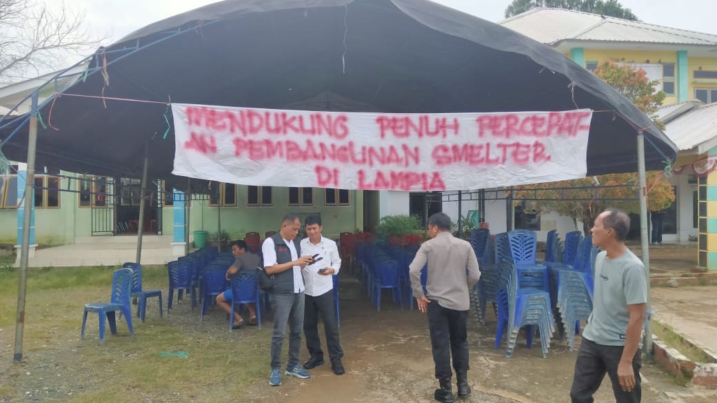 Dalam kegiatan tersebut, warga terlihat membentangkan spanduk bertuliskan “Mendukung Penuh Percepatan Pembangunan Smelter di Lampia” sebagai simbol persetujuan dan dukungan terhadap kebijakan pemerintah daerah.